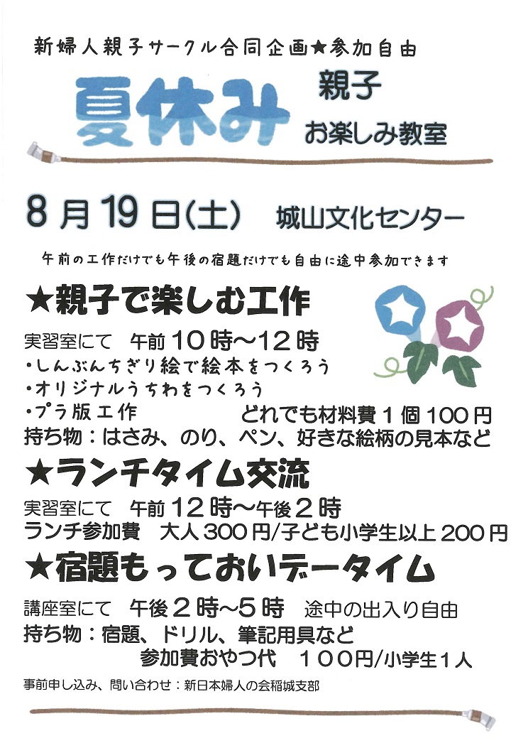 8月26日(土)・31日(木) 9月9日(土)10時~12時 中央文化センター