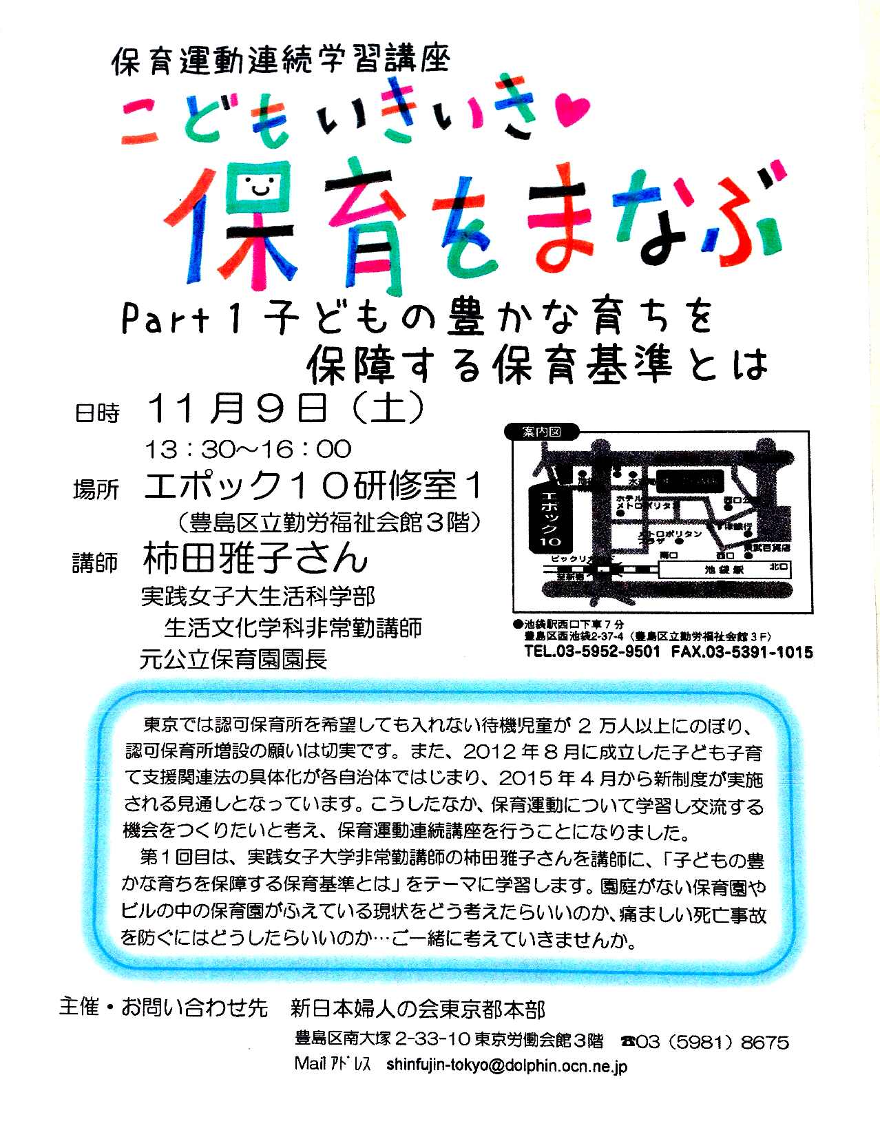 ホームトピックス 11月9日 保育運動連続学習講座を開催します 2013年11月5日 SHARE ツイート シェア はてブ LINE Pocket ツイート シェア はてブ LINE Pocket 保育運動連続学習講座は今週土曜日です!ぜひ、ご参加ください 参加申し込みは、ホームページお問い合わせフォームにお願いします。